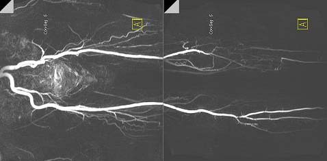 Low leg MRI image1(こちらはS社の非造影シーケンスを用いて描出した症例です。私の以前の研究テーマでした)